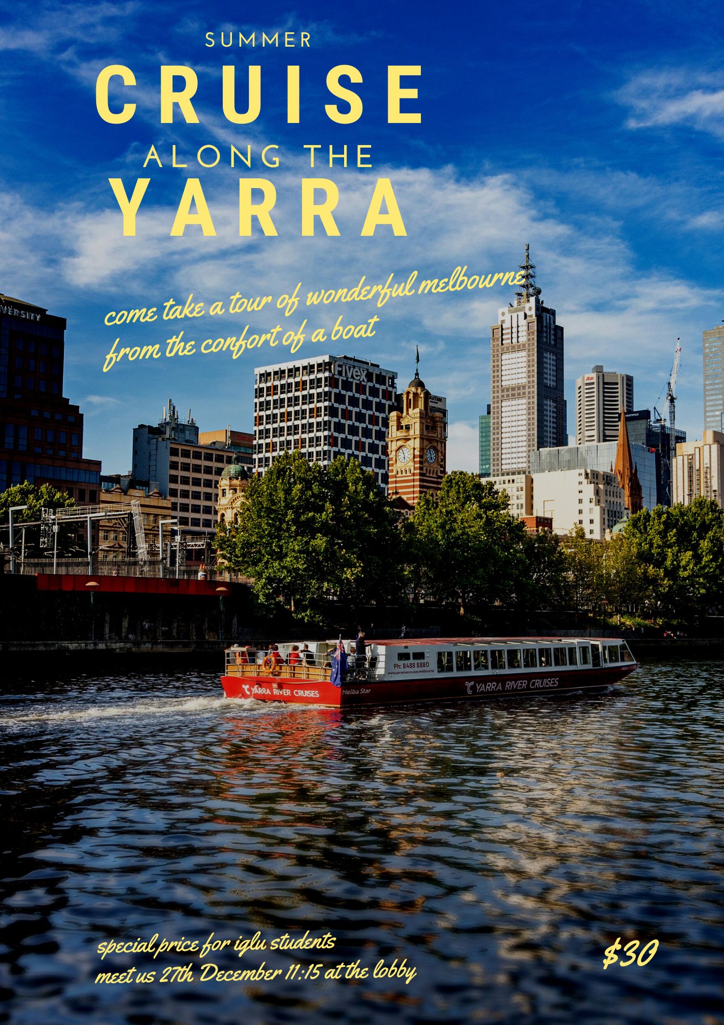 Are you looking to enjoy summer in Melbourne? This is the best way to enjoy summer in Melbourne by cruising along the Yarra River.