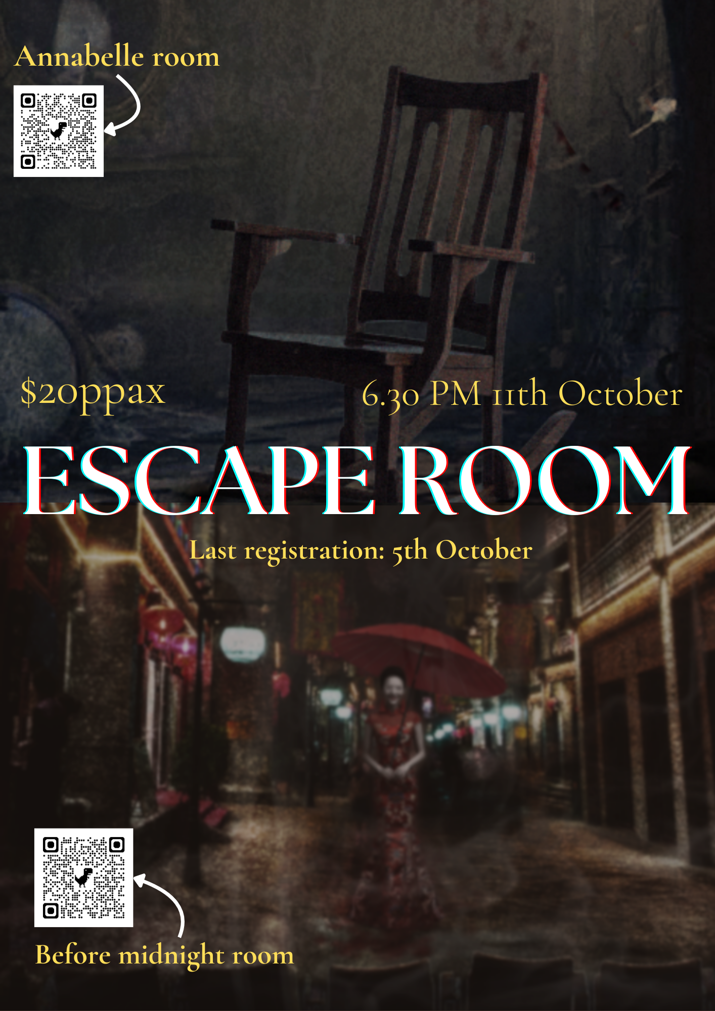 Two horror rooms; Annabelle or Before Midnight to choose from for a scary adventure.