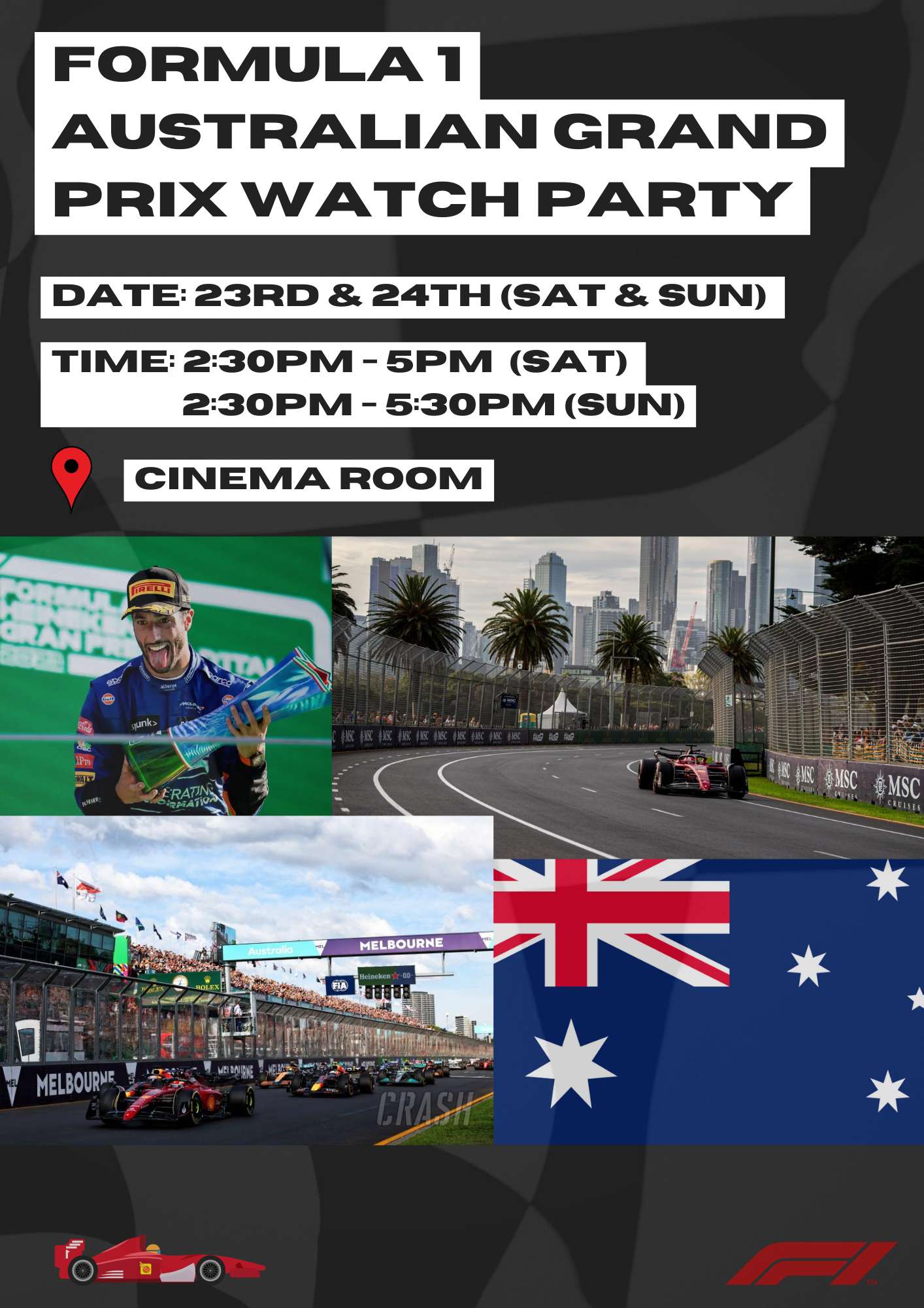 Come enjoy the Grand Prix in our cinema room with some snacks and friends.