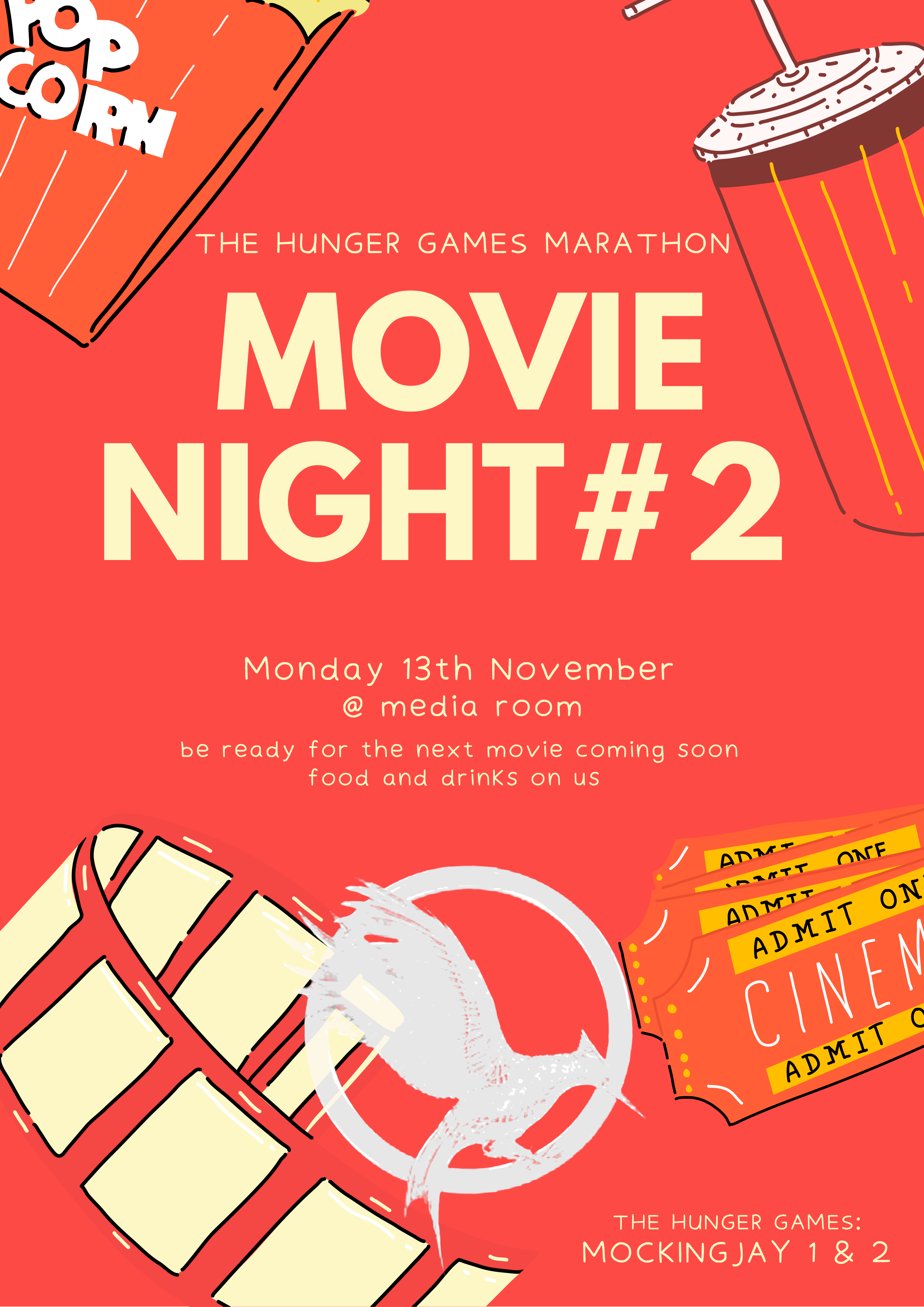 is a new movie coming out this month. For those who attend into the movie marathon from part 1 until part 3, you will be able to win the ticket to go see The Hunger Games: The Ballad of Songbirds & Snakes (2023).