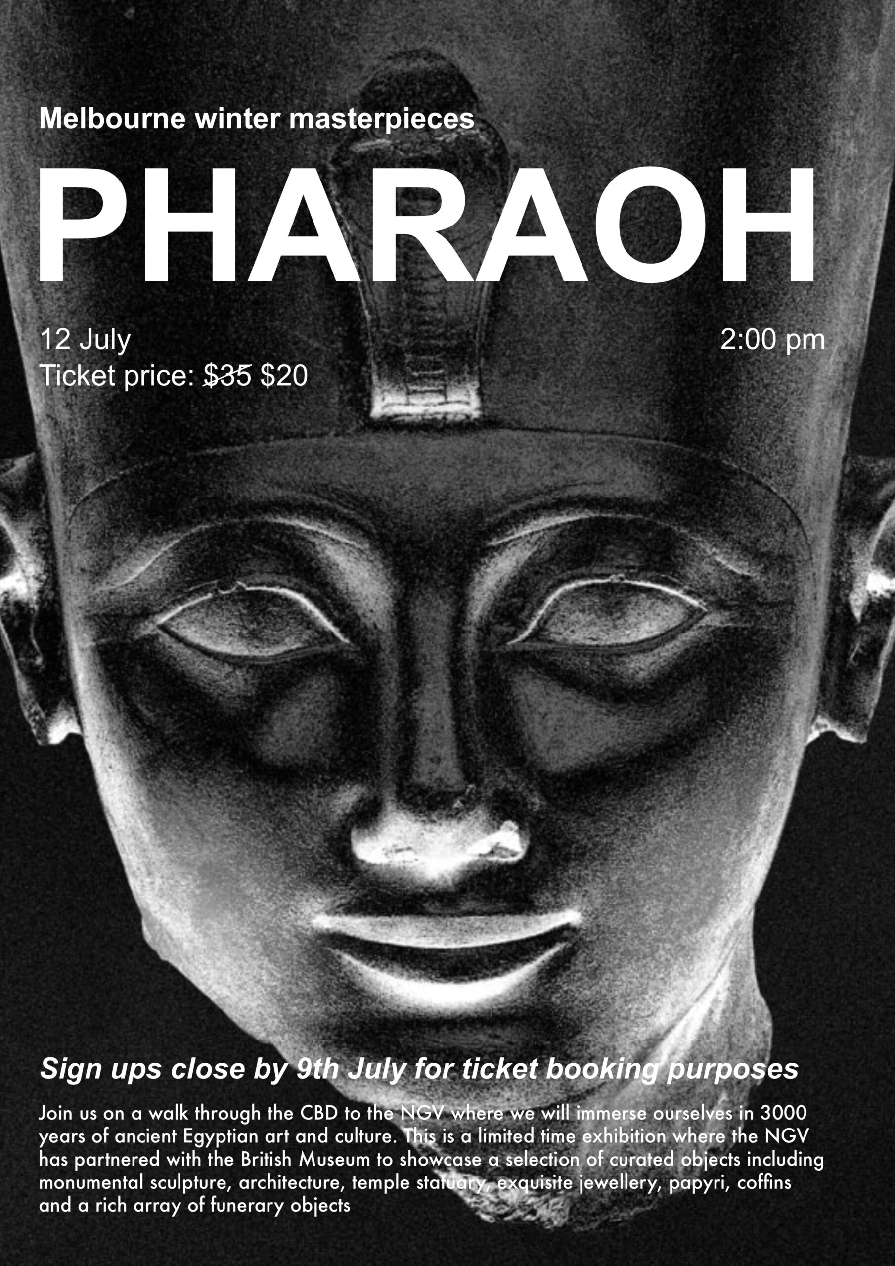 NGV is always evolving with new events and art exhibition, for the month of July, there will be an exhibit on Ancient Egypt after dark. Join us on an unforgettable experience with live music and art.